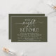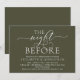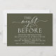 Modern romantisk kalligrafi, vit skrift, Olivgrön bakgrund, Bröllopsinbjudan för middagsbjudning (med korttitel: kvällen före). Det är perfekt för er festliga middagsbjudning inför bröllupet, dagen före er stora dag. Lägg till era detaljer i matchande svart stil / bokstäver.