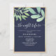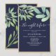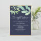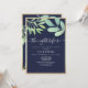 Elegant, modern, botanisk navyblå Dagen före Rehearsal Dinner inbjudan med akvarell eukalyptus grönska och enkel handskriven kalligrafi skrift.