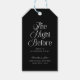 Tillsätt en genomtänkt finish till din fest med tack-gåva-taggar till övernattningsfesten "The Night Before". Designade i en modern, elegant stil med tidlös svart-vit typografi, är dessa tacksamhestaggar perfekta för att uttrycka uppskattning till dina gäster under din bröllomshögtid.
