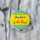 Den här snygga, positiva knappdesignen innehåller meddelandet "Student på dagen!". En sådan knapp skulle kanske kunna användas för att känna igen en student som har skött sig bra. [~Z0000317]