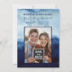 Lägg märke till din dag med en färgfull fest Spara datumkortet med detta fet marin blått och vitt vattenfärgsestetiskt med två foton av nyfödda. Anpassa med dina detaljer för att ange tonen för ett bröllop som har styrts i atmosfär och tidlös elegans.