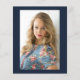 Ett modernt blått studenten-ceremonikort. Textinformationen och bilden kan vara personlig.