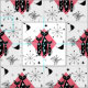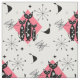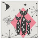 En söt mönster av svarta katter, atomstjärnor och abstrakt som inspireras av halvsekelmodeller i vackra toner av rosa, svart, vitt och grått.