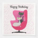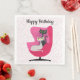 Denna pappra napkin är vit med rosa polka dots och två eleganters moderna katter från mitten av århundradet, en vit och en svart sitta i en rosa stol. Anpassa Grattis på födelsedagen-texten till mallen.