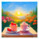 Den här målningen fångar en fridfull och fridfull eftermiddag fylld med de söta ögonblicken av desserttid 🍓 🍰 ☕. I avstånd finns det ett tydligt blå himmel, ett ljusskyggt sol och försiktigt färgad berg. Nästan, levande rosa och röda blommor blommar i fullt, vilket gör att du kan känna naturens skönhet. På bord skapar en jordgubbskaka och en jordgubbskädda som är full med mjuk rosa-pipande grädde en perfekt, och skapar nu ett ännu speciellare ögonblick. Scenen känns som om den visar dagens sötaste och mest avslappnande ögonblick. Allt blandas i fred och komfort, och varje gång du tittar på den här målningen känner du lycka och lugn. Den ljusa och varma färgen i målningen hiss, tittarens humör, skapar att de känner sig ännu bättre. Genom denna teckning hoppas jag att många människor kan ta en paus från sitt livliga liv, hitta ett ögonblick av avslappning och uppleva en tid av läkning. Det är min önskan att lite lycka och fred tillkommer ditt liv. 🙏 ❤️