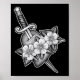 Dagger through Heart X Flowers Blackwork Tatto Fl Poster