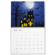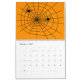En kalender med ett läskigt, spöklikt, eller Halloween-tema; presenterar olika typer av läskiga, men gulliga djur, siktar och anmärker gemensamt tillhörande med spöklikt eller Halloween