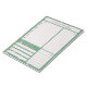 Personlig Daily Planner med gräs träd i grönt och guld. Planeraren har avsnitt som du kan använda för att göra lista, anteckningar, måltider och avtalade tider eller påminnelser. Det här rivna anteckningsblocket trycks på varje sida för att hålla dig i 40 dagar - perfekt för vintern och julhelgen.