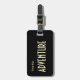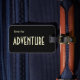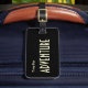 Svart bagagemärke, på framsidan är krämtext som lyder "Time For Äventyr". På baksidan av användan anger du vilka mallar som ska användas för att lägga till ditt namn och information.