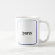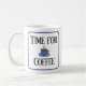 Det här är perfekten mugg för en kaffedrickare, med ord: Dags för kaffe. Ord understryks genom att det ligger i en blå kvadrat med rundat kant och dekoreras med en kopp kaffe i matchande blått. Du kan också anpassa mugg med ditt namn. Utformningen är enkel och effektiv.