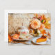 Dahlia Bloom with Pumpkin Cake Slice and Teapot Vykort