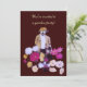Den här vismliga, konstnärliga trädgårdspartiinbjudan har en mystisk borttappad av blommor i hans dahlias. Han är klädd i gulbrun, guld, vit och brun och sportar en hatt för skade, skägg och mustasch. Blommorna är magenta, rosa, gult, lavendel och lila och bildar en abstrakt mönster som snurrar runt honom. En mindre bild upprepas på baksidan och all relevant information. All text kan anpassas eller tas bort.