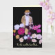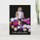 Det här vita, konstnärliga Fars dag-kortet har en mystisk borttappad av blomsterträdgårdsmästare i hans dahlier. Han är klädd i gulbrun, guld, vit och brun och sportar en hatt för skade, skägg och mustasch. Blommorna är magenta, rosa, gult, lavendel och lila och bildar en abstrakt mönster som snurrar runt honom. All text kan anpassas eller tas bort.