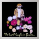 Den här visuella, konstnärliga poster har en mystisk borttappad av blomsterträdgårdsmästare i sina dahlier. Han är klädd i gulbrun, guld, vit och brun och sportar en hatt för skade, skägg och mustasch. Blommorna är magenta, rosa, gult, lavendel och lila och bildar en abstrakt mönster som snurrar runt honom. Underbart för Jorden eller när du vill tänka grönt. Texten, som är ett citat från Ralph Waldo Emerson, lyder: Jorden skrattar i blommor. Den kan anpassas eller tas bort.