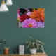 Förtäck dagen med den här vackra poster som innehåller en samling vattniga dahlia-blommar i en färgstark utformning av rosa, gult, vitt och mauve.