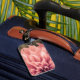 Detta foto presenterar ettslut som skjutas av en rosa dahliablommar.