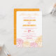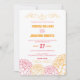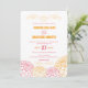 Denna moderna bröllopsinbjudan har ett dekorativt mönster av rosa och orange dahlior. Festlig och ljus för din stora dag.