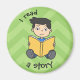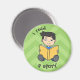 En liten pojke som läser en bok. Bakgrunden är grönt. Du kan använda den här magneten för att skapa din dagliga barn-rutin.