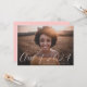 Elegantens inbjudan till studentfest med vågrät student med "Class of 2023" som visas i ett vitt, handskript. Anpassa framsidan av fotoinbjudan till studentfesten med student namn och skolan. Inbjudan återgår till visning av din studentfest med rosa eller färg efter eget val.