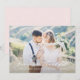 Tack för personligens foto, ett platt kort med ett vitt snyggt skript med rosa mönster. Detta romantiska och visuella tack är perfekt för bröllop, studenten och andra evenemang.