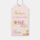 Celebrate with these Daisy 1st Birthday Thank You Tags - Isn't She ONEderful! These charming favor tags are the perfect finishing touch for your little girl's first birthday celebration. Featuring a delicate watercolor daisy and a trendy "Groovy Boho" aesthetic in soft pink and gold tones, they beautifully complement a "One-derful" theme.