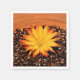 Böjor med ett varm foto av många kaffebönor med en daisy av gult som är tonad med orange på träbakgrund.