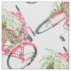 Daisy Basket Retro Rosa Bicycle Mönster Fabric