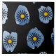 Daisy Black Ceramic Tile with blue and black abstract daisies will liven up your space. Use it in the kitchen, living, dining, bathroom or office space.