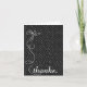 Stort "tack" i vit text med daisy doodlegrafik på svart och vit polka-punktbakgrund. Text kan redigeras.