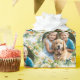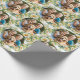 Skapa din egen presentförpackning papper med ett favoritfoto efter eget val. Fotot visas i de cirklar på symbolen som är placerade i ett upprepat mönster. Bakgrunden är blek blå med daisy blommor. Om du vill fortsätta klickar du på Anpassa för att ladda upp bild till mallen, så kan du förhandsgranska presentfigurationen.