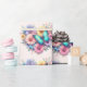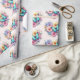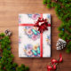 Wrapping paper with a beautiful illustration. A heart-shaped bouquet of flowers in pastel blue, green, purple and yellow. With a lovely blue butterfly hovering in front.