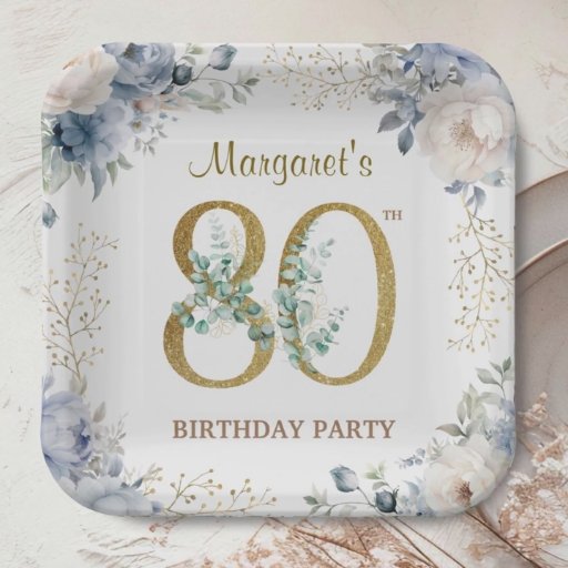 80th Birthday Elegant Gold & Dusty Blue PeonyDesignad av H-Art Studio Design