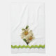 Färska vita daisy på ditt val av bakgrund färg. Ett bra rickrack med grönt avslutar av den här vackra vintage-inspirerade kökshandduken.