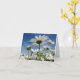 Fotografi av en fält av vita daisy som når blå himmel. Anpassade text, "Reach for the Himlar!" inuti kortet.