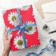Daisy för utskrift av blommiga blommigtar på röd r presentpapper