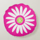 En unik daisy-formad grafisk kudde i frisk rosa, ljust grön och vit. Personalisera med din egen initial, för närvarande står det R. Designad av Sarah Trett. Skulle se bra ut i ett tonårsrum eller flickrum för att knyta samman rosa och gröna färger.