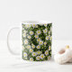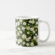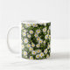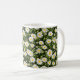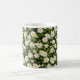 This classic white ceramic mug boasts a wraparound pattern of delicate white daisies blooming vibrantly against a deep black background, evoking a whimsical meadow at dusk for an elegant, boho-chic vibe. The high-contrast floral design brings timeless botanical charm to your daily brew ritual, blending simplicity with sophisticated style. Microwave and dishwasher safe, it's crafted for enduring use in kitchens, offices, or as a charming gift for flower lovers.