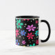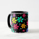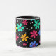 Daisy med flera färgader i svart bakgrund mugg