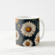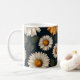 Cute Mugg med Daisy Mönster på en djup blå bakgrund.