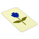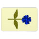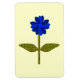 Den här magneten i fantastisk har en digital bild av en daisy med en grönt med två löv i grönt på den och lätta och mörk blått färgader med ljusblå mittpunkt. Bakgrunden är solsken gult.