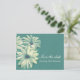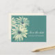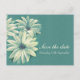 Fantastisk finkonst målning osteopermum calenduleae bröllop klara datum inbjudan. Enkel och romantisk bröllop klara datum inbjudan, i gröna och elfenbensfärgade nyanser med en touch av lila. Klassisk bröllopsdesign del av den romantiska daisy bröllop stationary set. Redigera detta klara datum bröllop postkort med dina namn, datum och egen formulering. Unikt målad i gouache på mörkt papper av konstnär och designer Sarah Trett.