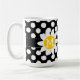 Du ska kärlek denna gulliga, blom- svartvita polka dotsmönsterdesign! Vit- & gultdaisyblomman tillfogar ett modernt vårtema. Besöka vårt lager, moderiktigt bröllop, för att beskåda detta det kalla mönster på många mer underbara anpassadeprodukter inklusive flickaktigt monogramgåvor, spara dateravykorten och fjädra themed bröllopinbjudningar! Tacka dig!