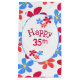 Orange, rött och blått daisy blommor på vit bakgrund för 35ens födelsedag. Bakgrunden till färg kan ändras. Åldersnumret kan redigeras.