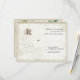 Det konstverk som användes för att skapa denna inbjudan sammanställdes av en originalmålning av Audrey Jeanne Roberts blandad med hand plockade-snurrar och en handmålad subtil snöre mönster i bakgrunden. En blå fjäril fladdrar mellan en lös bukett av rosa ros, lila pansier, gultens daisy och ferner. Den omvända sidan har den subtila snöre och snurrande mönster, en ställe för ditt monogram och er inbjudan. DU KAN OCKSÅ UPPNÅ: