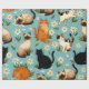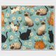 This cheerful seamless pattern features a delightful mix of cats—calico, Siamese, black, and orange tabby—playfully scattered among white daisies and green leaves on a soft blue background. With cats in various poses and expressive personalities, this design radiates warmth, charm, and whimsy. Perfect for cat lovers, floral fans, and anyone who adores cozy, nature-inspired art.