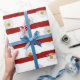 Röd och vit vattenfärg rand mönster med vita daisy.