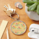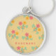 Daisy Retro Bouquet Mönster i Gult Rund Silverfärgad Nyckelring