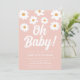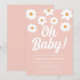 Planerar du en flickdusch? Den här inbjudan till babyduschen för söt blommigt är dekorerad med handdragna daisy och snyggt vit retrotypografi på rosa. Enkelt anpassade. Teckning © Michele Davies.