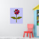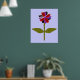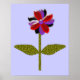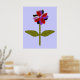 Den här fantastiska blommigten har en digital bild av en daisy med en grönt med två löv på grönten och lila, rött och svart färgad med ett lila center. Pälsen ser ut som om de är gjorda av plastfilm som har fångat ljuset och gett upphov till en begynnande effekt. Bakgrunden är en lugnande blå färg och det finns en svart broder runt utskriften. Den här designen finns på flera utskrifter av olika storlek, varav den största visas här.