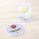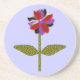Den här söt sandstenen underlägg en digital bild av en daisy med en grönt med två grönt löv på den och lila, rött och svart färgad med ett lila center. Pälsen ser ut som om de är gjorda av plastfilm som har fångat ljuset och gett upphov till en begynnande effekt. Bakgrunden är ett lugnande blått färg.
